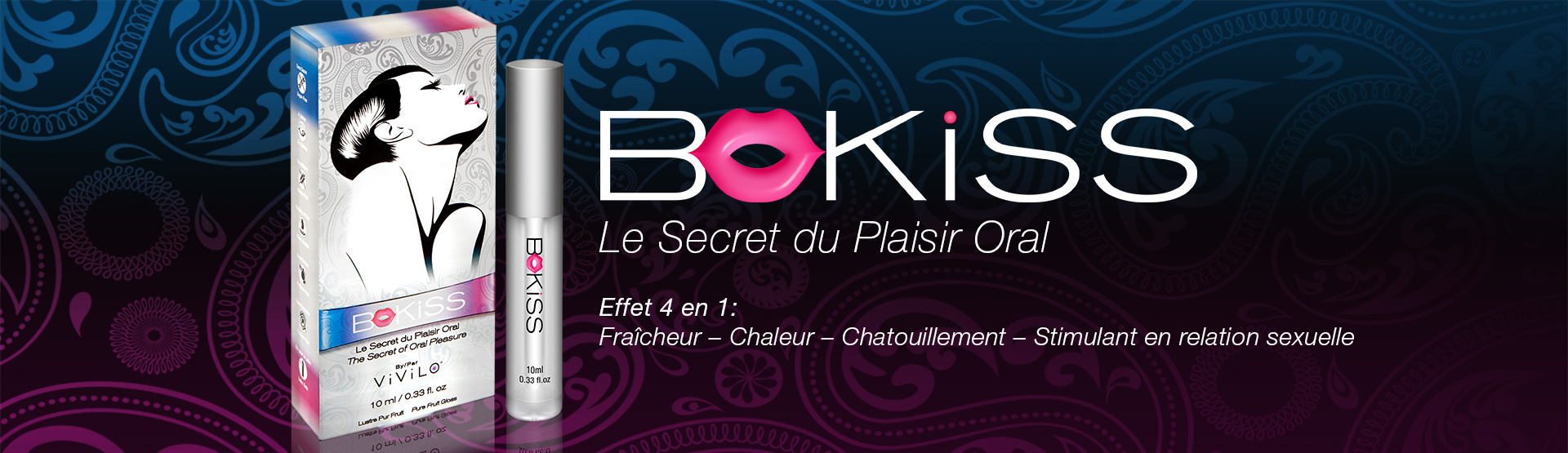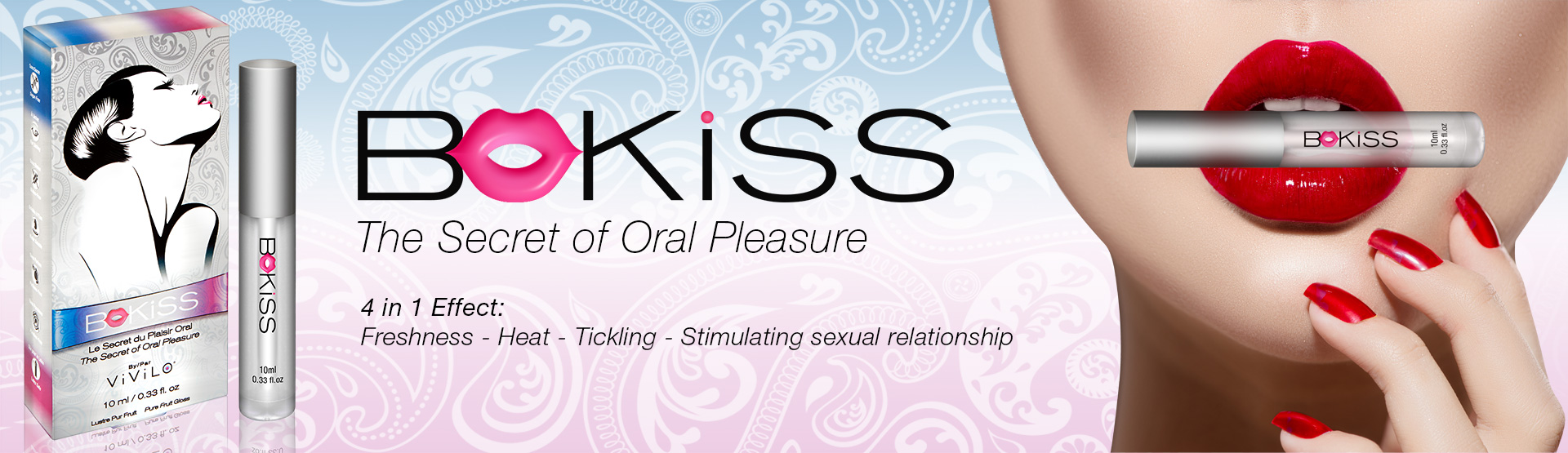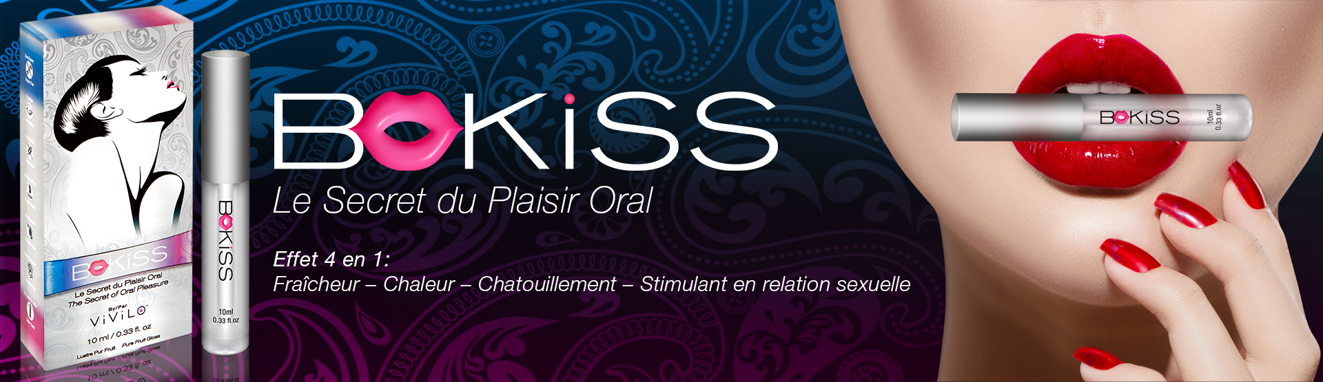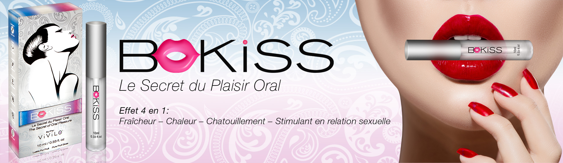 Le Plaisir Oral est une pratique qui remonte à la nuit des temps. Idéal pour conserver la virginité ou éviter une grossesse, il rapproche le couple. D’ailleurs, pour rendre cette expérience plus intime et inoubliable, nous vous offrons BoKiss. Ravigotez le sexe oral en enduisant vos lèvres d’une couche généreuse de BoKiss et embrassez passionnément votre partenaire, ce qui vous transmet mutuellement le plaisir de baisers stimulants. Toujours avec BoKiss, vos lèvres et votre langue, occupez-vous des parties intimes de votre partenaire. Bénéficiez de ce que BoKiss apporte à votre couple et vivez de merveilleux moments érotiques. BoKiss vous offre une occasion en or de murmurer à votre partenaire que vous l’aimez, faites tout cela avec tendresse et amour!