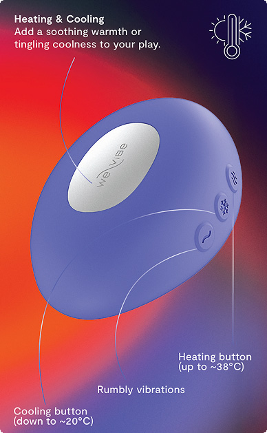 Heats up to 38°C (100°F) or cools down to 20°C (68 °F) at the touch of a button—for sensual foreplay without the mess of candle wax or ice cubes.